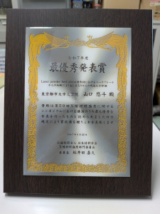 強度設計システム研究室の山口悠斗さん(修士1年)が2025年7月24-25日に名城大学・天白キャンパスで開催された第59回X線材料強度に関するシンポジウムにおいて金属積層造形法(金属3Dプリンティング法)の一つであるレーザー粉末床溶融結合法(LPBF)に関する研究発表を行い、最優秀発表賞を受賞しました。